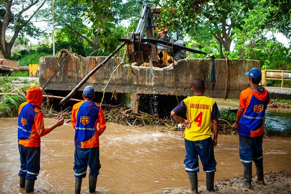 En este sentido, a través de la Dirección de Espacios Públicos se llevó a cabo el saneamiento del Río Vigirima, a la altura del puente Cardonal, donde fueron activadas las cuadrillas; así como la retroexcavadora para descongestionar los tapones ocasionados por las recientes precipitaciones en la ciudad.